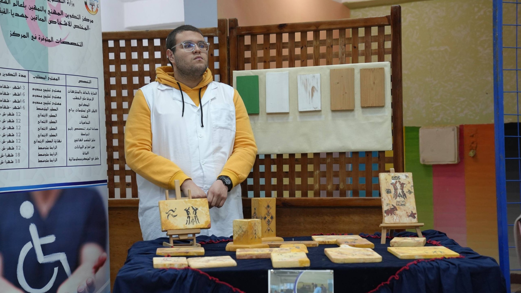 - استهل الوفد الوزاري الزيارة بالاطلاع على المعرض المنظم بالمناسبة، والذي عرض نماذج من الأعمال والمنتجات التي أنجزها المتربصون، في صورة تعكس ما يمكن أن تثمره فرص التكوين حين تتاح للجميع دون استثناء. فقد أظهرت هذه الإبداعات أن المهارة لا تعترف بالحدود، وأن الطاقات الكامنة لدى شباب هذه الفئة قادرة على الإبداع والعطاء متى وجدت فضاءً يحتضنها ويمنحها الثقة والمسار الصحيح للتطور.