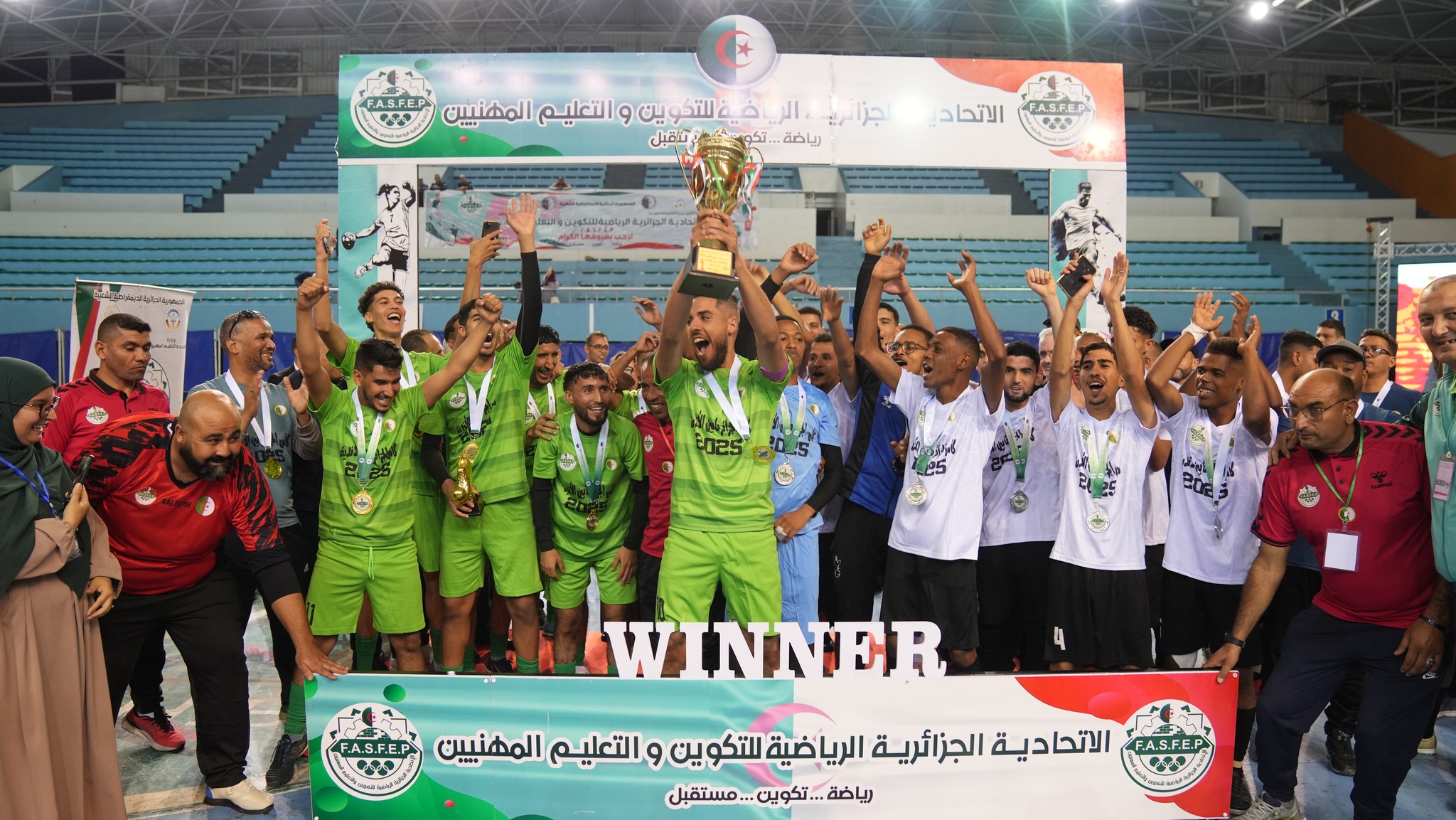 في أجواء رياضية مفعمة بالحماس والتحدي، احتضنت القاعة المتعددة الرياضات “حرشة حسان” بالعاصمة يوم أمس الاثنين 10 نوفمبر 2025، نهائي كأس الجزائر لأندية التكوين والتعليم المهنيين لسنة 2025، الذي نظمته الاتحادية الجزائرية الرياضية للتكوين والتعليم المهنيين، بحضور السيدة نسيمة أرحاب، وزيرة التكوين والتعليم المهنيين، والسيد وليد صادي، وزير الرياضة.