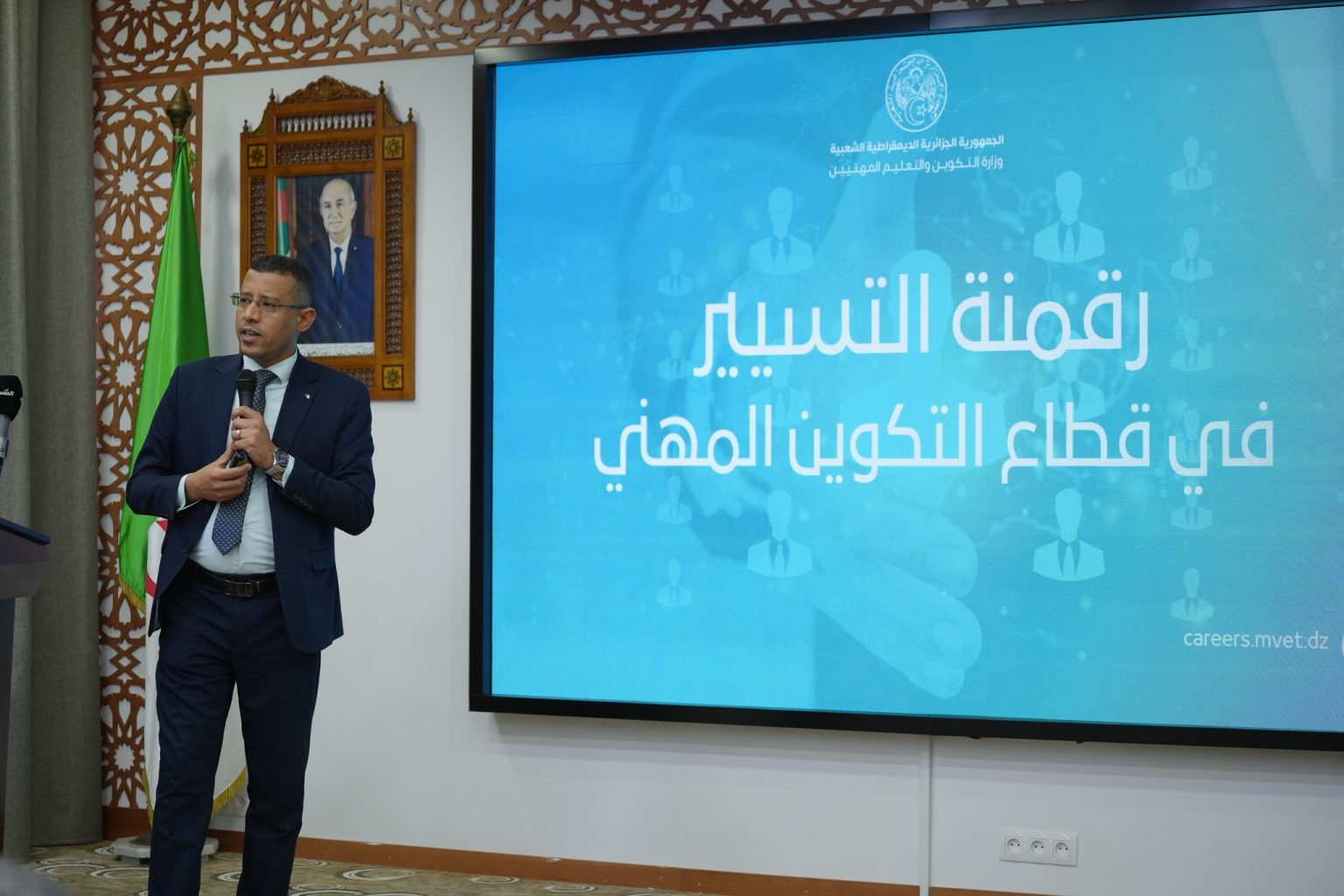 In this context, Mr. Benba Jalloul, Director of Human Resources at the Ministry, delivered a detailed presentation on the new digital platform for appointing vocational training institution directors: careers.mvet.dz.